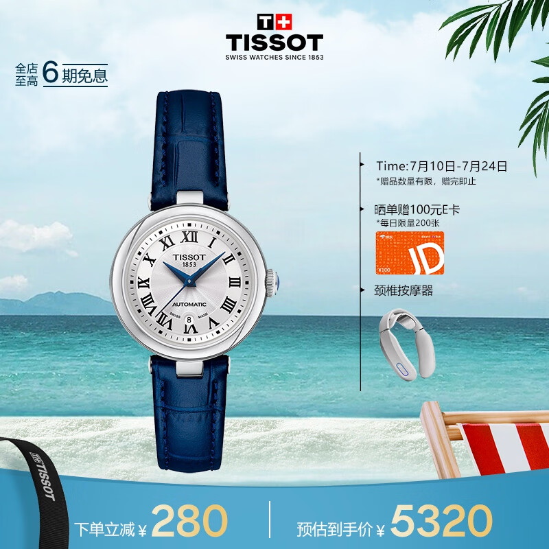 天梭(TISSOT)刘亦菲同款 小美人系列腕表 皮带机械女表 T126.207.16.013.00价格:5600.00元!