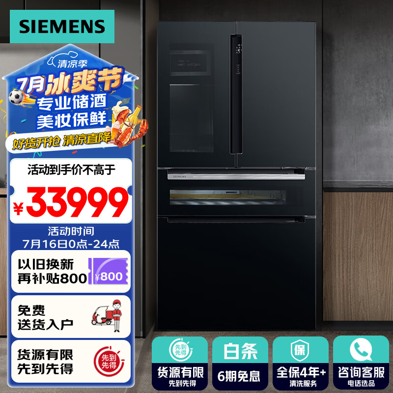 西门子 SIEMENS 567升酒饮多门智能冰箱 美妆保鲜 专业储酒 KF96FPB50C价格:33999.00元!