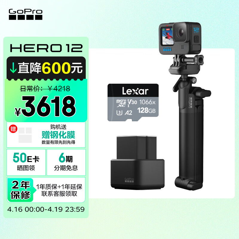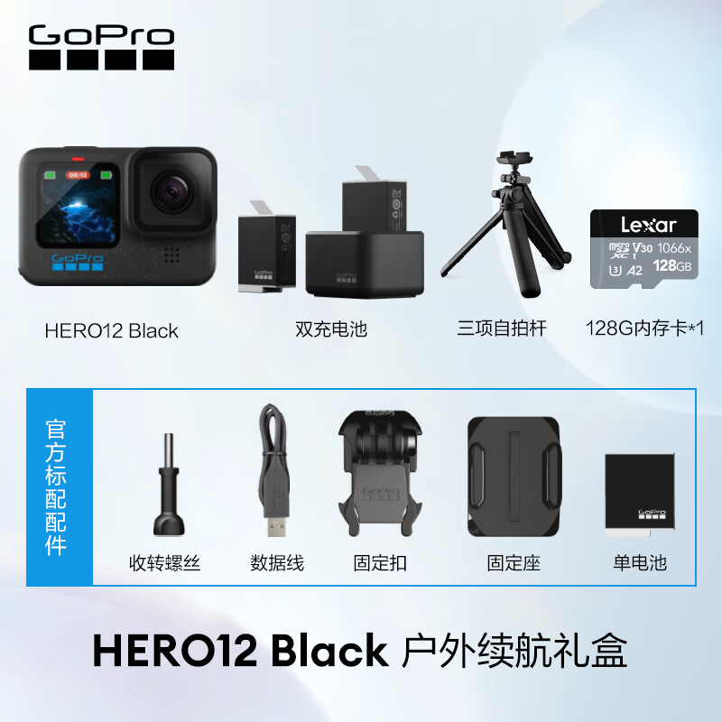 GOPRO HERO12 Black防抖运动相机 摩托车骑行运动摄像机 潜水水下相机 自行车记录仪 户外续航礼盒 HERO 12 Black价格:3518.00元!