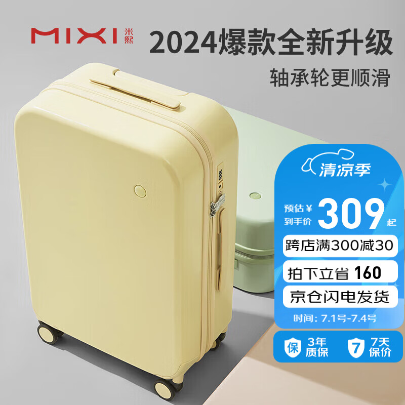 米熙mixi杆箱子行李箱女旅行箱包男密码箱高颜值登机箱20英寸云雀黄价格:469.00元!