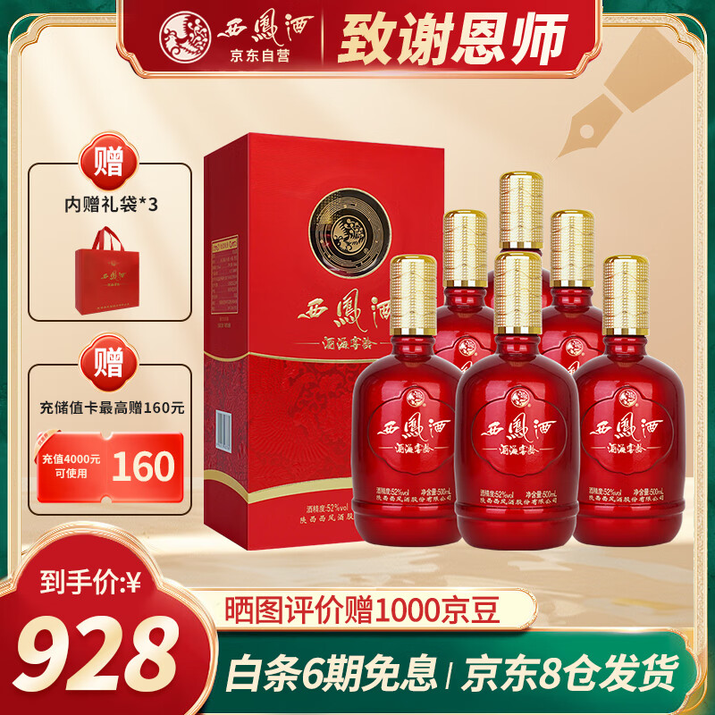 西凤酒 龙凤呈祥52度白酒箱装凤香型纯粮食婚宴喜酒500ml*6瓶自饮送礼价格:928.00元!