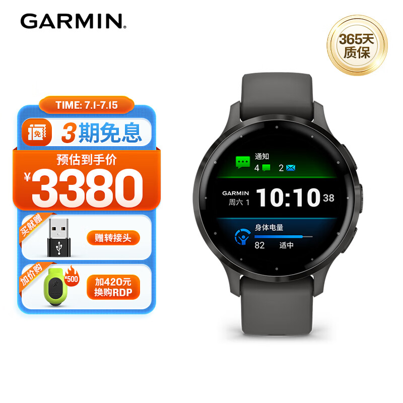 佳明(GARMIN)Venu3s 进阶睡眠健康血氧监测时尚都市NFC支付智能运动腕表迷雾灰价格:3380.00元!