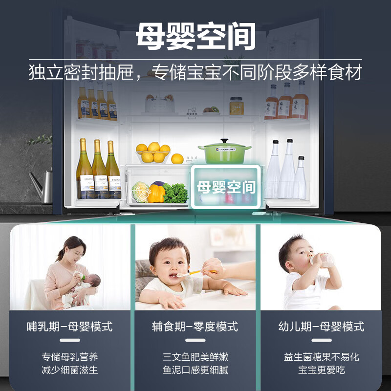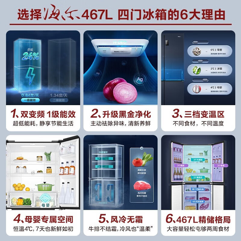 海尔冰箱四开门467升 一级能效双变频风冷无霜十字四门多门对开门家用超薄节能大容量电冰箱价格:4599.00元!