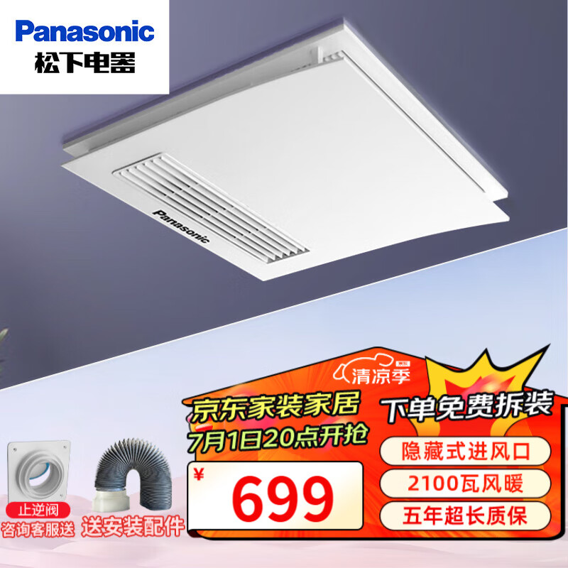 松下浴霸暖风换气三合一无照明吊顶式卫生间排气扇浴室暖风机小白弧 新款 2100瓦风暖 FV-RB20Z1 通用吊顶款价格:799.00元!
