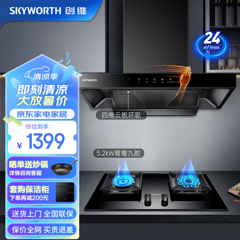创维(Skyworth)抽油烟机灶具套装 家用24大吸力油烟机燃气灶套餐 顶吸烟灶套装Y006+Z61BS天然气价格:1499.00元!