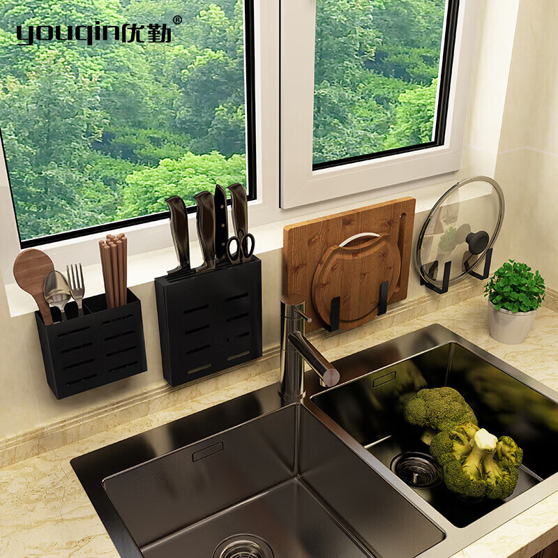 优勤置物架免打孔壁挂式家用调味料用品大全刀架挂架多功能收纳架价格:148.00元!
