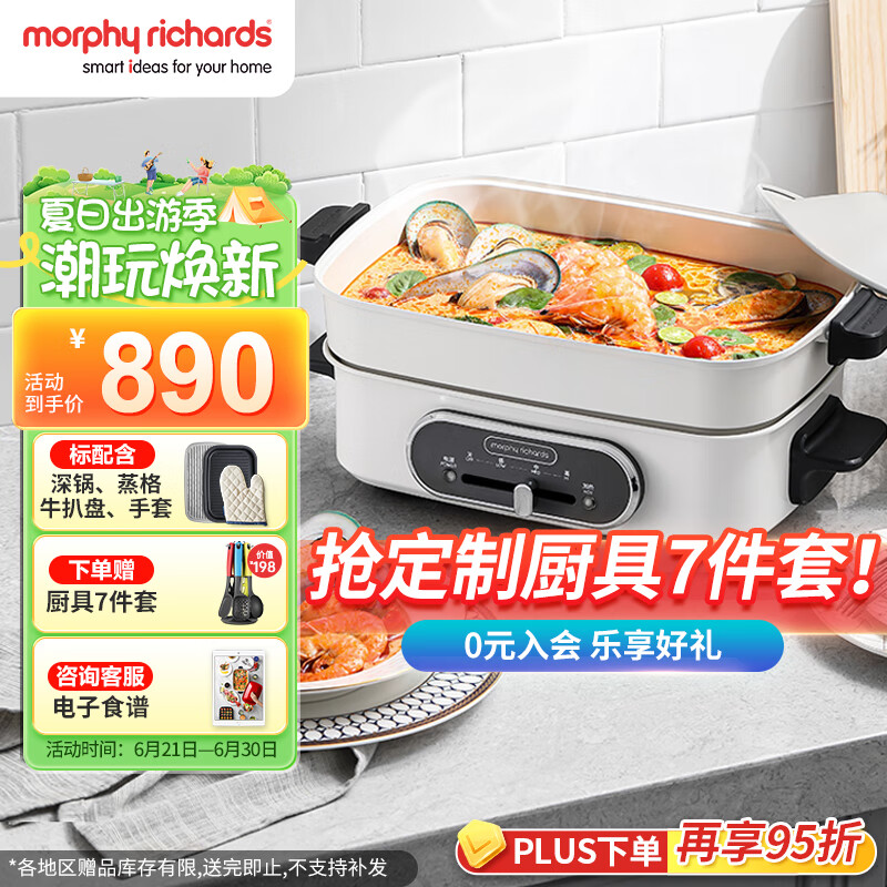 摩飞电器(Morphyrichards)多功能锅 家用多用途锅 电火锅电煮锅电蒸锅电热锅 2.5升 火锅锅 MR9088 富士白价格:890.00元!