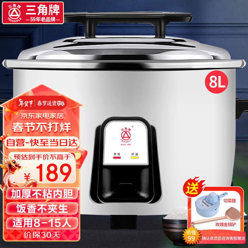 三角牌(Triangle)电饭煲商用电饭煲 老式电饭锅食堂饭店餐厅酒店工厂保温蒸饭锅大容量家用 8L 6-10人用价格:189.00元!