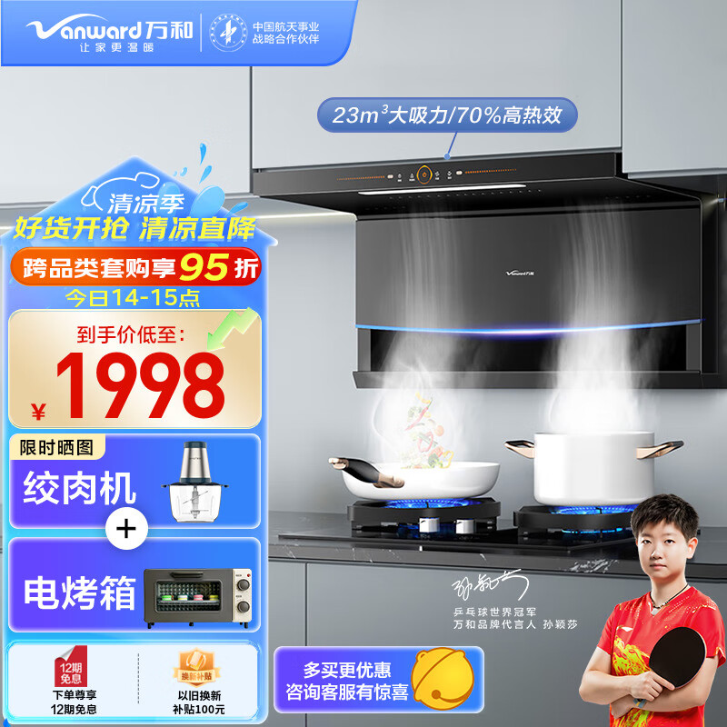 万和(Vanward)顶侧双吸7字型家用抽油烟机 70%高热效燃气灶具烟灶套装 23m3/min大吸力WL856+G6L50(天然气)价格:1998.00元!