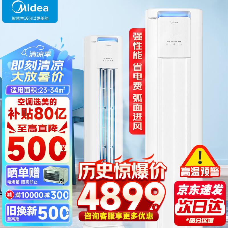 美的空调 2匹 酷省电 新一级能效 变频冷暖 空调立式 客厅空调柜机 云朵系列 KFR-51LW/N8KS1-1P价格:4899.00元!