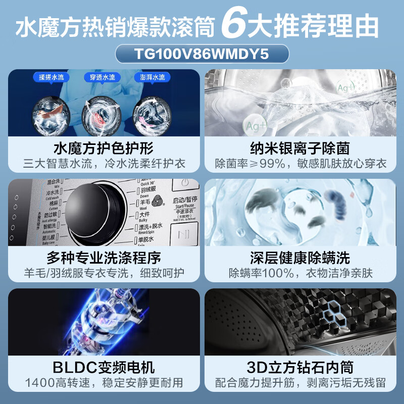 小天鹅(LittleSwan)滚筒洗衣机全自动 水魔方系列 护色护形 纳米银离子除菌 10公斤 以旧换新TG100V86WMDY5价格:2889.00元!