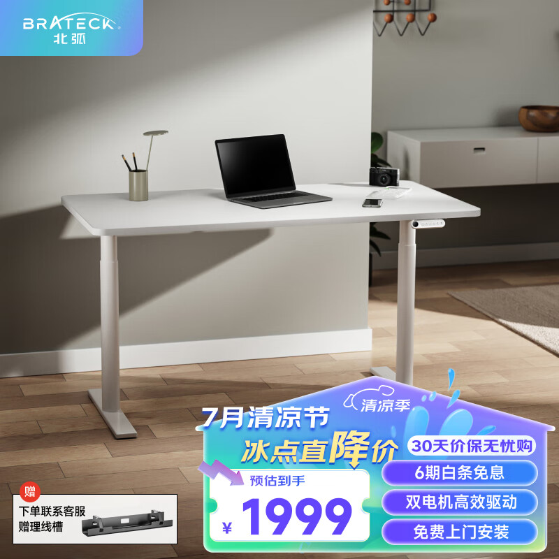 Brateck双电机电动升降电脑桌 北弧站立办公升降书桌 升降台 M1白1.5米价格:2209.00元!