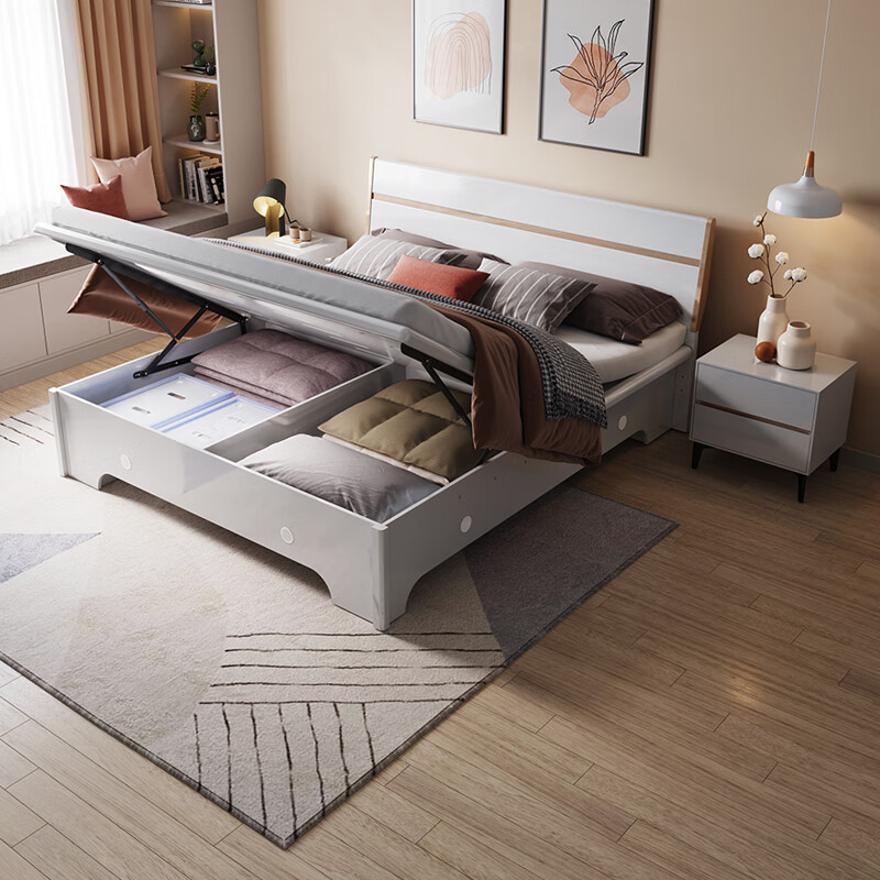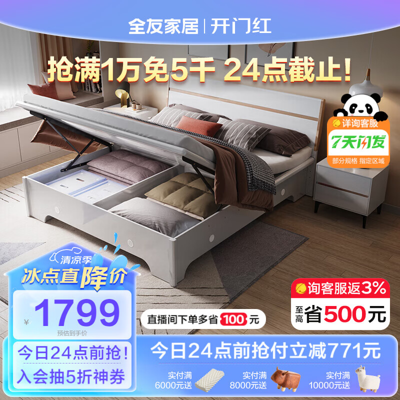 全友家居 双人床现代简约高箱床双色拼接床屏储物床卧室家具126101B价格:2570.00元!