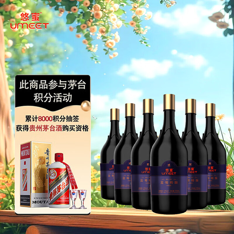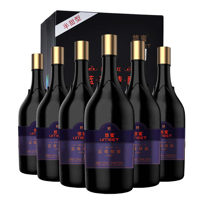 茅台(MOUTAI)生态农业悠蜜蓝莓酒 遇见·丹红 果味酒(半甜型)550ml*6整箱装价格:330.00元!