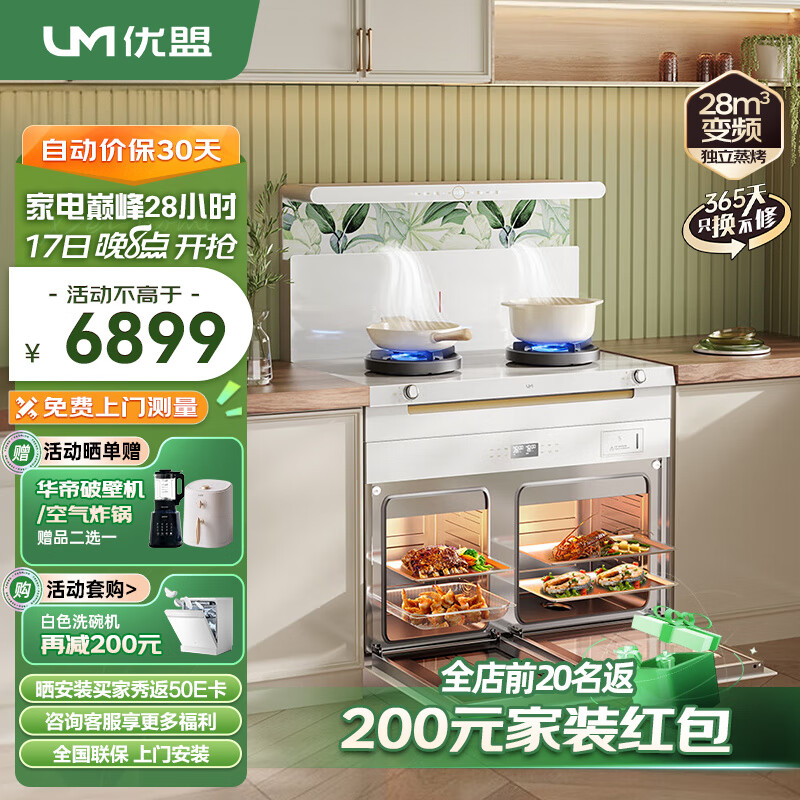 优盟(UM)集成灶蒸烤一体集成灶 独立蒸箱烤箱蒸烤箱一体机 家用大吸力侧吸下排油烟机环保灶自动清洗天然气价格:6999.00元!