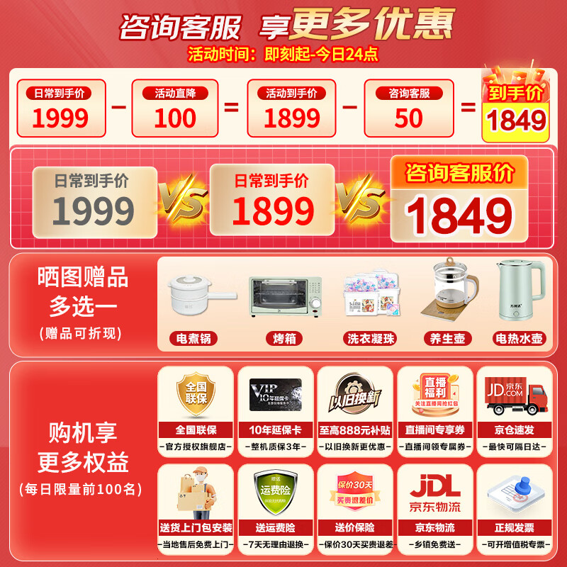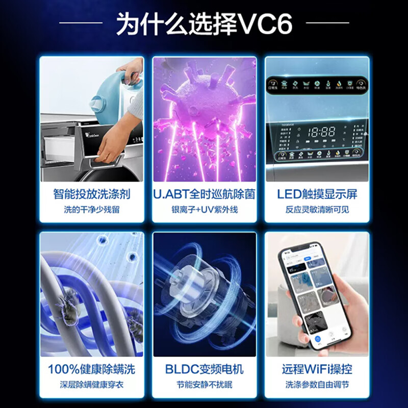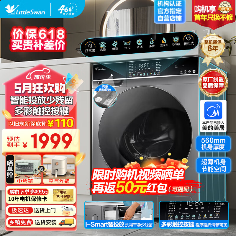 小天鹅(LittleSwan)滚筒洗衣机全自动10公斤变频 智能投放洗衣液 全时巡航除菌 远程操控 触控彩屏家用洗衣机TG100VC6价格:1899.00元!