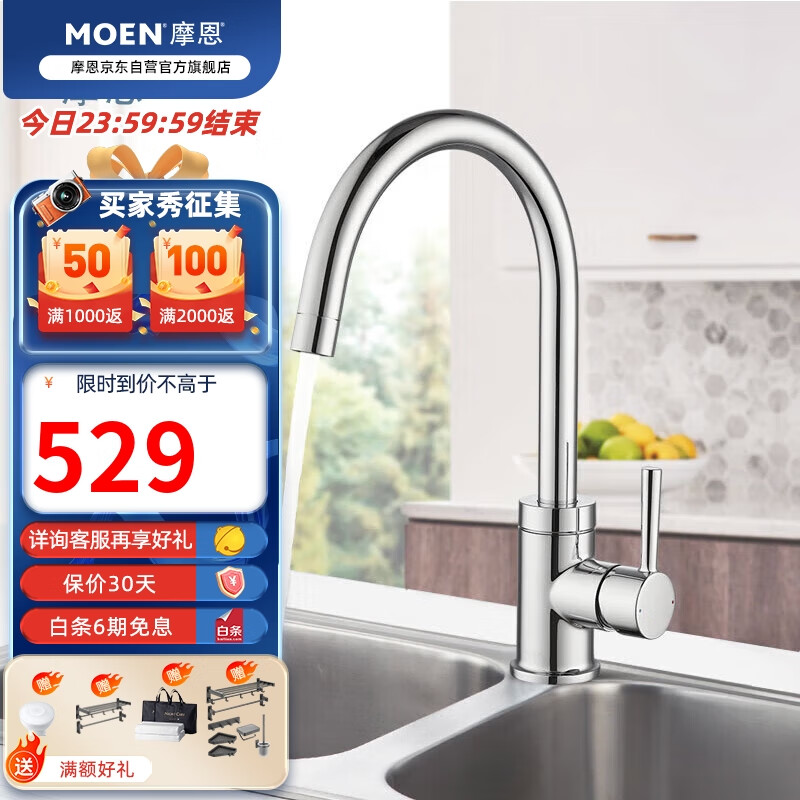 摩恩(MOEN)厨房水槽龙头 可旋转洗菜盆洗碗盆龙头 净铅单把手冷热水龙头价格:579.00元!