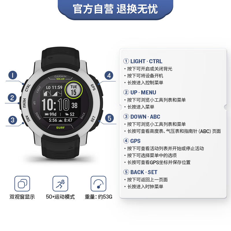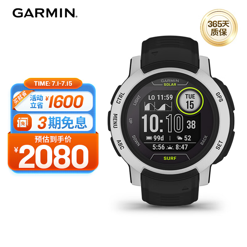 佳明(GARMIN)本能2户外探险GPS北斗多星定位智能运动手表太阳能浪潮版礁石黑价格:2080.00元!