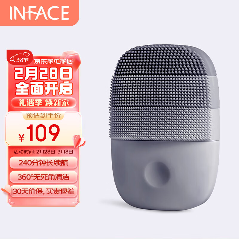 inFace洗脸仪神器电动洁面仪男士洗面器男面部超声波震动清洁器仪器脸部按摩机硅胶清洁毛孔刷价格:109.00元!