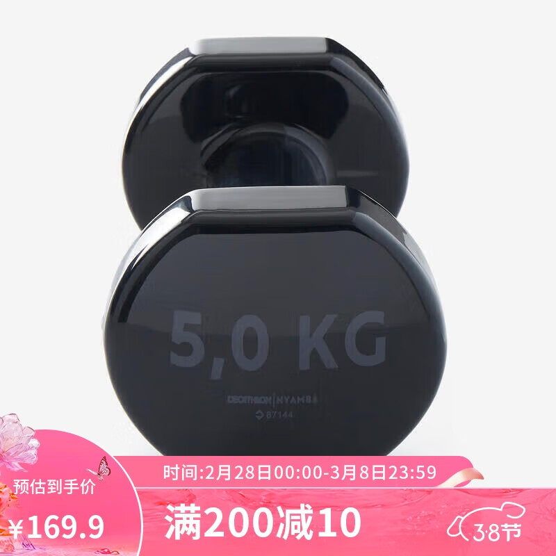 迪卡侬小哑铃女士健身家用儿童包胶室内男士健身家用5kgX2黑色-712813价格:169.90元!