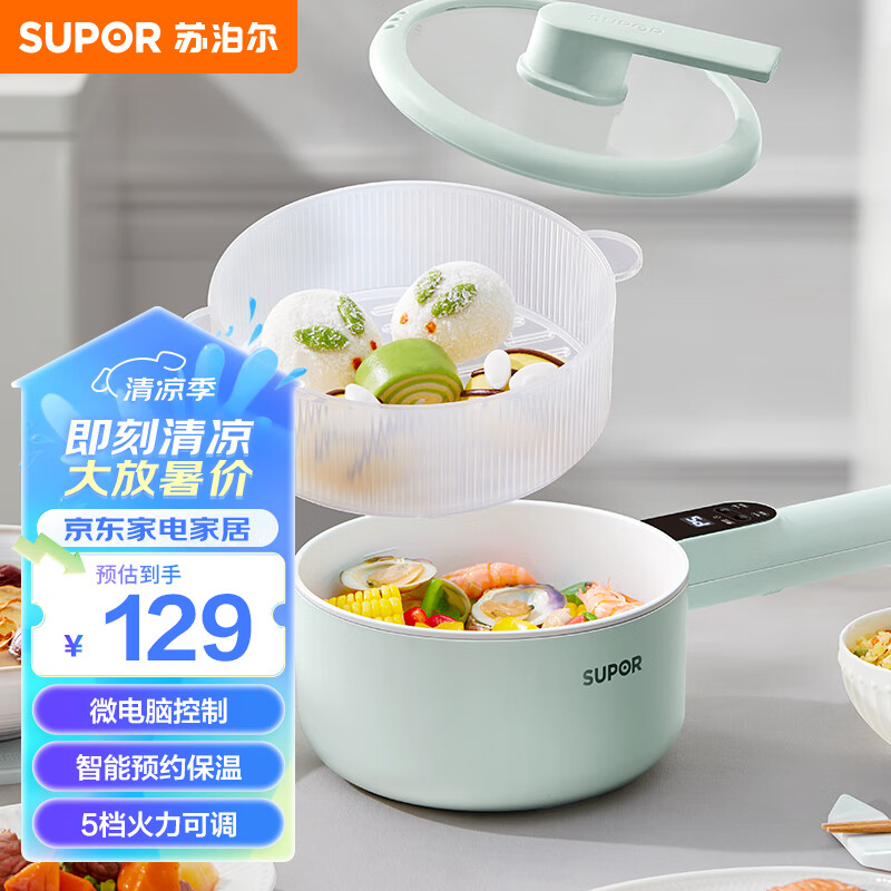 苏泊尔 SUPOR 多功能锅 电煮锅电炒锅电蒸锅电火锅小电锅宿舍小锅 泡面锅 带蒸屉1.6L多用途锅H20YC841A价格:129.00元!