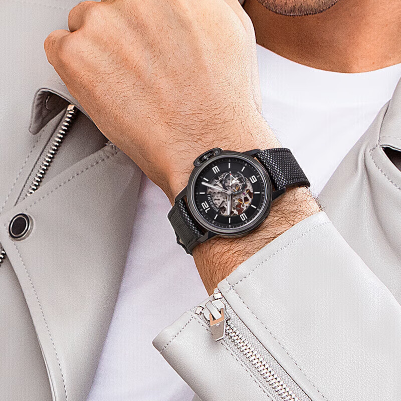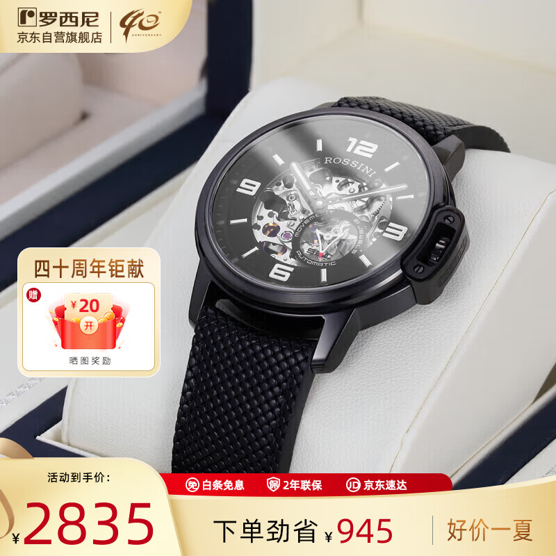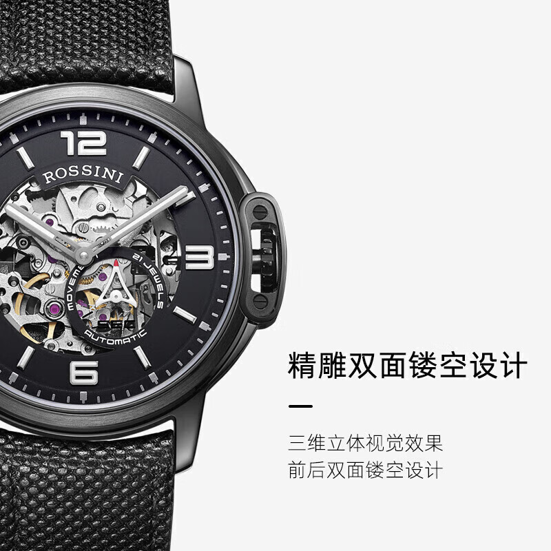 罗西尼(ROSSINI)手表男自动机械表黑盘皮带生日礼物送男友国表百搭商务镂空 5793价格:3135.00元!