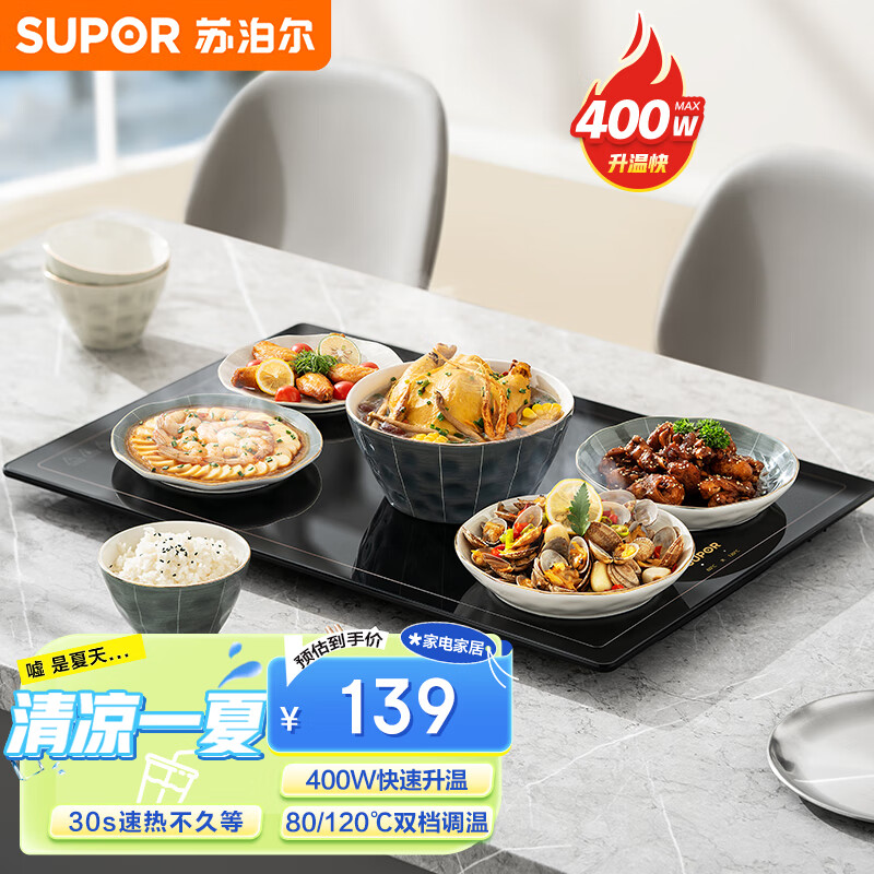 苏泊尔(SUPOR)暖菜板 饭菜保温板热菜板 加热桌垫菜板 烘干发酵暖酒保温板(方形) BF6040A805J价格:139.00元!