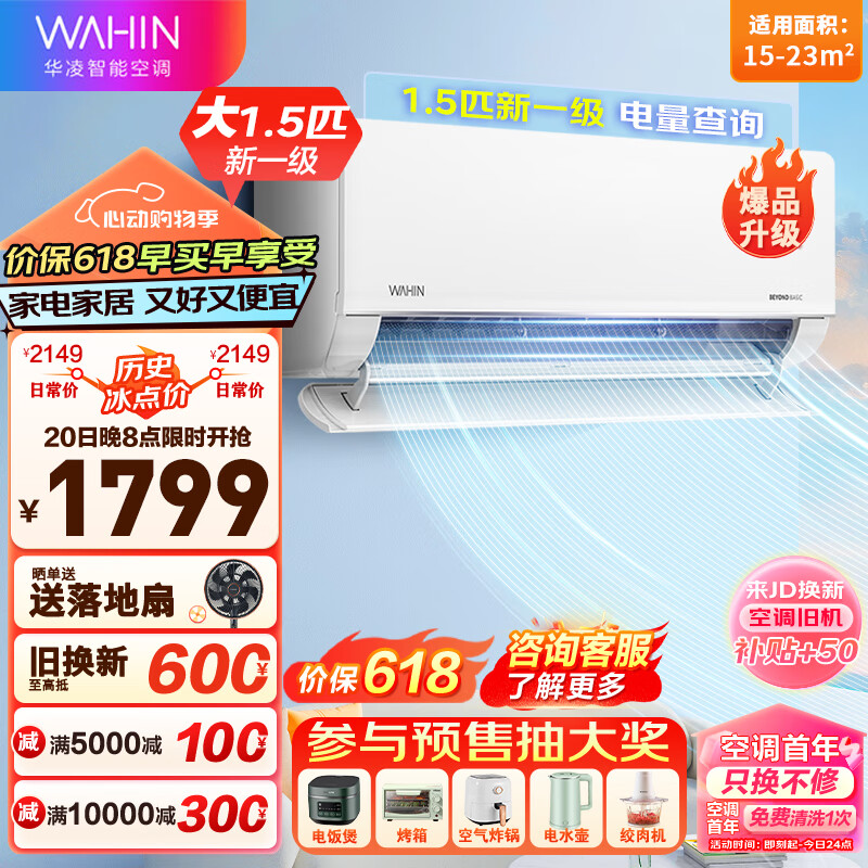 华凌(WAHIN)空调 1.5匹新一级能效变频冷暖 卧室挂式空调 手机APP操控自清洁 KFR-35GW/N8HL1Pro 以旧换新价格:1799.00元!
