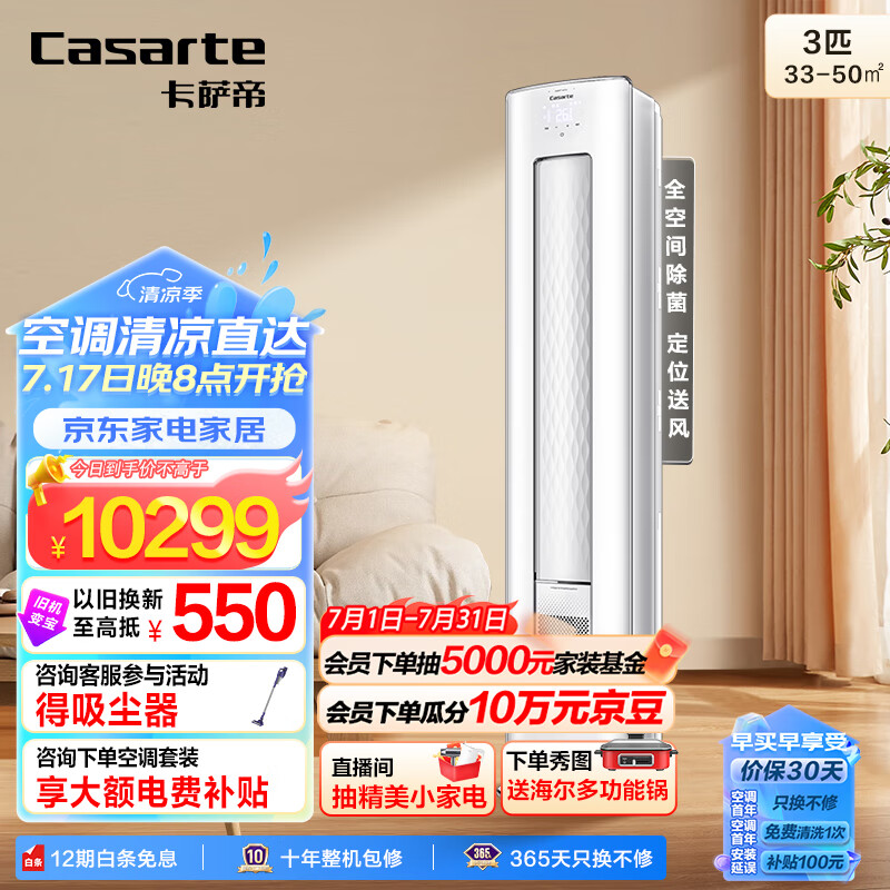卡萨帝(Casarte)光年 3匹 变频立式空调柜机 新一级能效 自清洁 智能 全空间除菌 CAP728GCA(81)U1以旧换新价格:10299.00元!