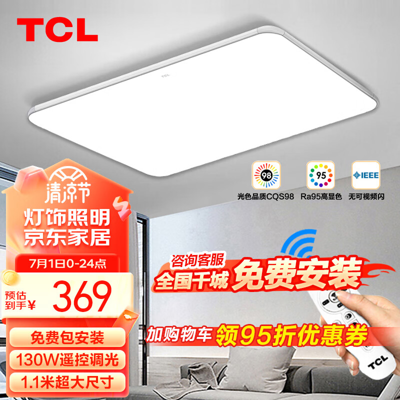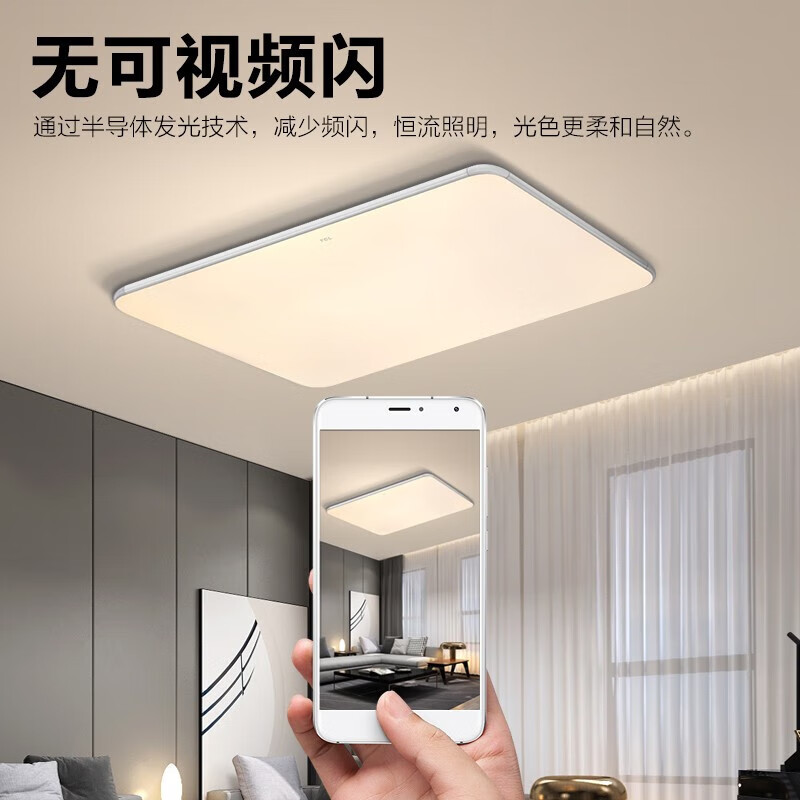 TCL冰玉130W遥控调光客厅大厅灯现代简约LED吸顶灯 长方形直径1.1米价格:419.00元!