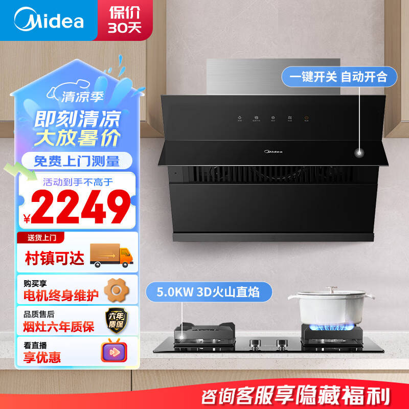 美的(Midea)烟灶套装 小尺寸抽油烟机侧吸式 家用双灶具 小户型油烟机燃气灶套装机J27+Q230A天然气价格:2249.00元!
