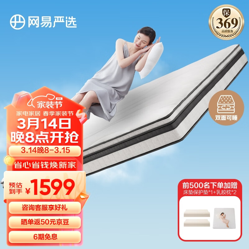 网易严选3D椰棕弹簧床垫1.8*2米 席梦思床垫 软硬双面冬夏两用 京仓闪发价格:1799.00元!