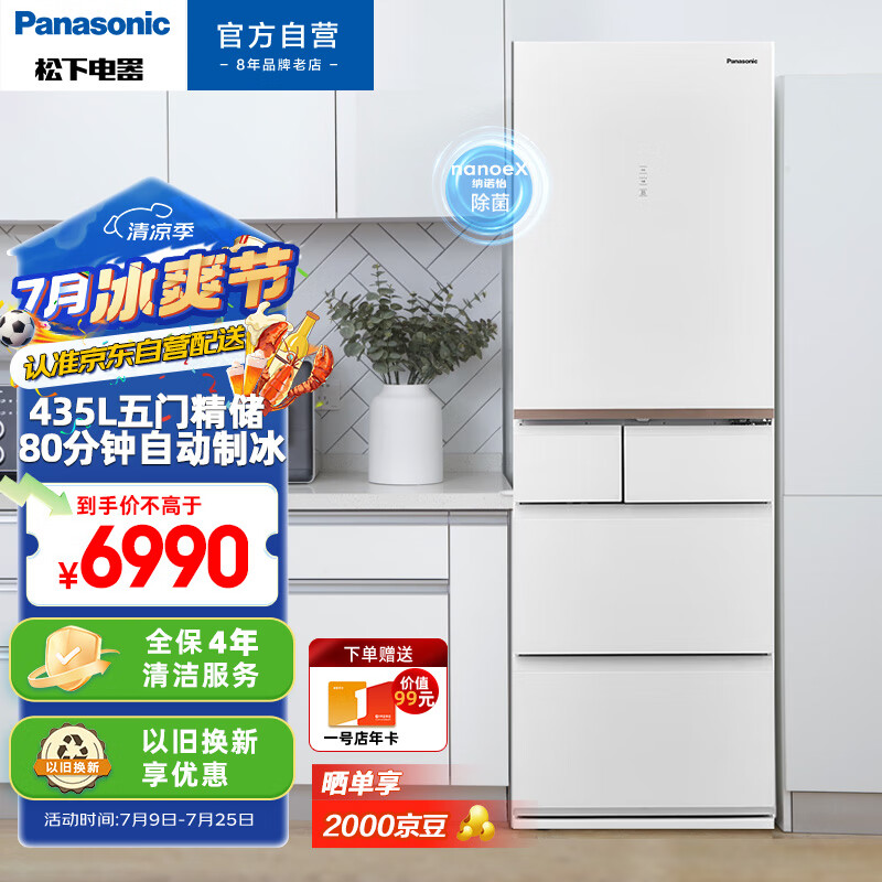 松下(Panasonic)435升家用冰箱无霜超薄冰箱 多开门 小户型 风冷变频自动制冰 NR-JE43WXC-W价格:6990.00元!