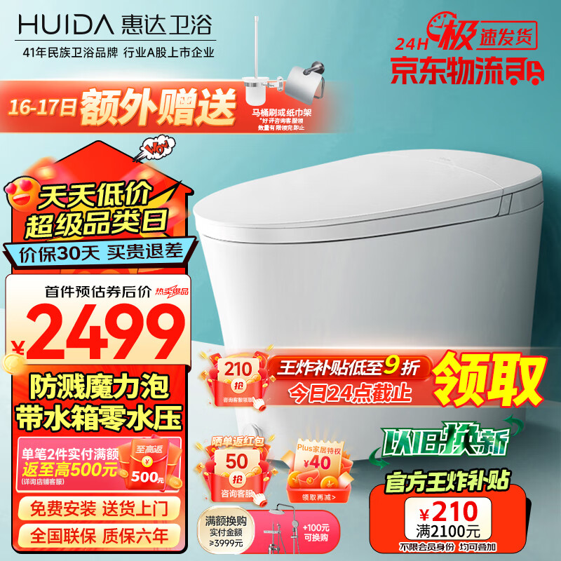 惠达(HUIDA)智能马桶泡沫盾带水箱无水压限制一体式坐便器HDZB-Z896 400坑距价格:3259.00元!