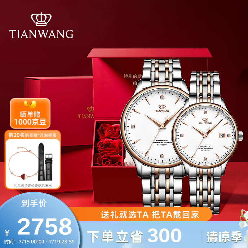 天王(TIAN WANG)手表 表白礼物昆仑系列钢带机械对表GS&LS5876TP.D.TP.W价格:3058.00元!