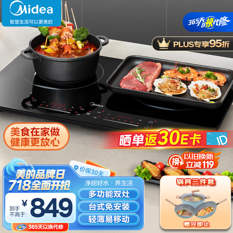 美的(Midea)双灶电磁炉 电磁灶 家用大功率3500W防护双头灶 轻薄机身 定时预约多功能MC-DZ35W5-111价格:849.00元!