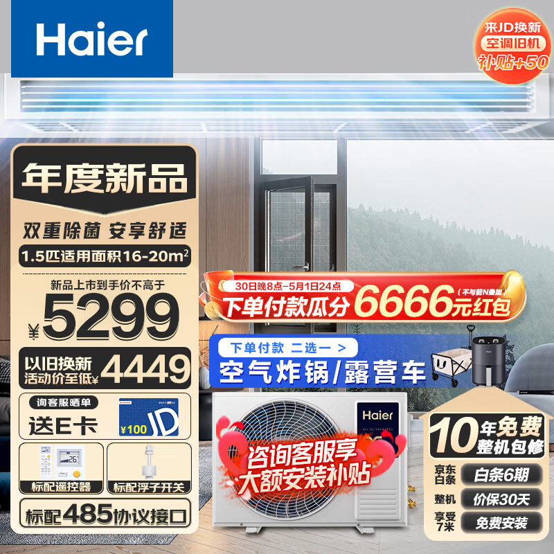 海尔(Haier)中央空调 风管机一拖一 京樽 1.5匹嵌入式空调 全直流变频一级能效 KFRd-35NW/70EAF81包安装 京配价格:5299.00元!