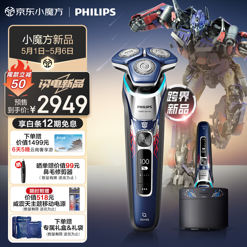 飞利浦(PHILIPS)电动剃须刀蜂巢9系 擎天柱联名礼盒款 SkinIQ智能光感刮胡刀 配无线清洁中心 送男友价格:3549.00元!