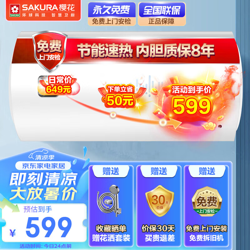 樱花(SAKURA)40升电热水器 速热大水量 家用储水式热水器 大功率节能保温 SHW-40QY05价格:699.00元!