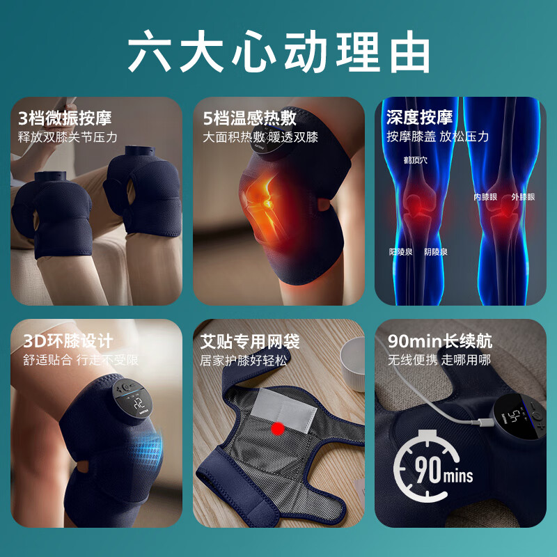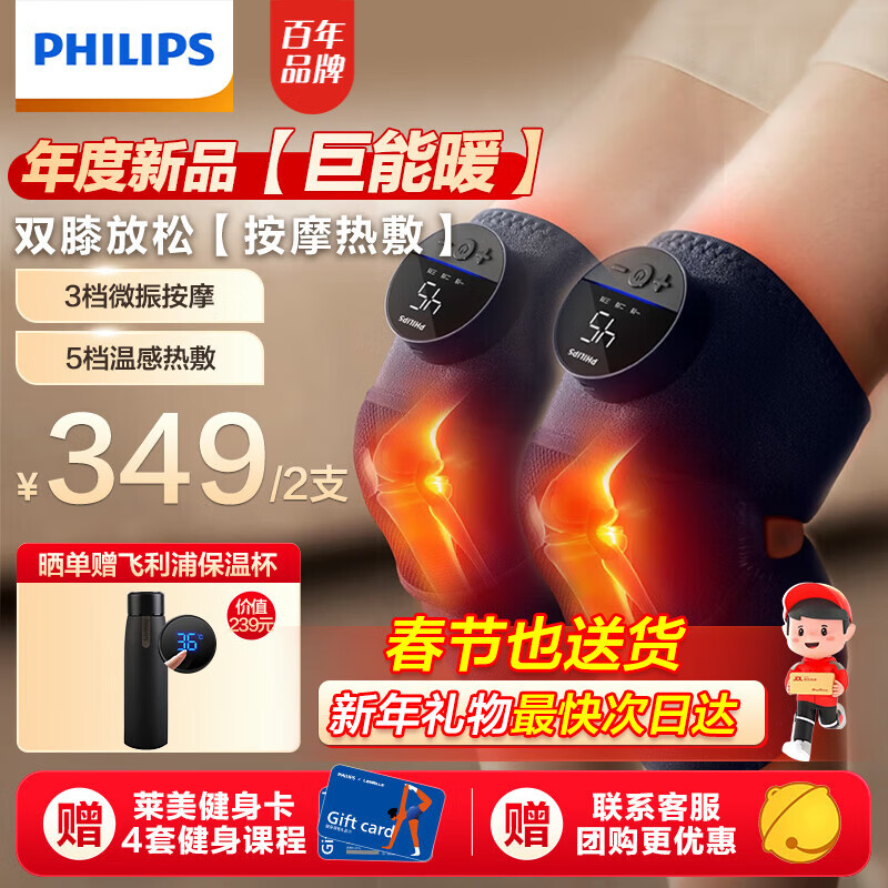 飞利浦(PHILIPS)膝盖按摩仪膝盖热敷腿部按摩器腿部热敷小腿按摩器多功能热敷腿部按摩仪保暖膝盖按摩器加热护膝 【年度新品·双膝热敷】双驱按摩+控温控时更价格:349.00元!