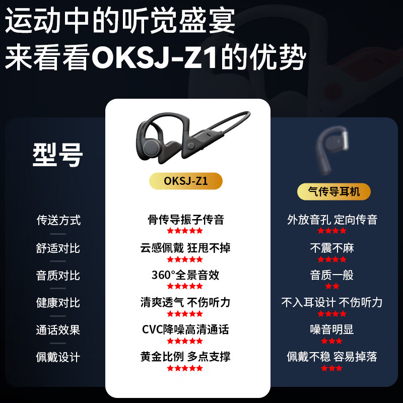 OKSJ 骨传导耳机 蓝牙耳机跑步运动无线不入耳挂耳式骑行不漏音通话降噪 适用于华为苹果vivo小米手机价格:99.90元!