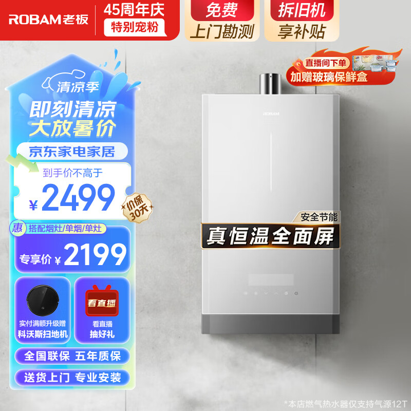 老板(Robam)14升燃气热水器天然气水气双调恒温节能省气家用强排式升级款JSQ27-HT602A-14价格:2499.00元!