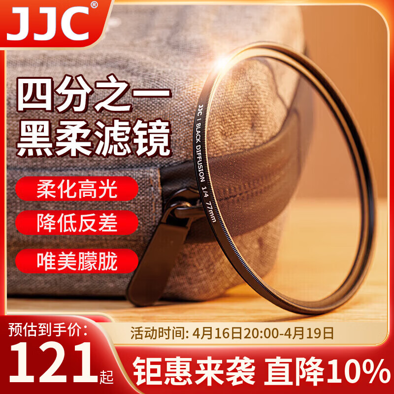 JJC 黑柔滤镜 1/4四分之一 柔光镜 柔焦朦胧镜 人像柔化镜 适用佳能尼康索尼富士单反微单相机55mm价格:121.00元!