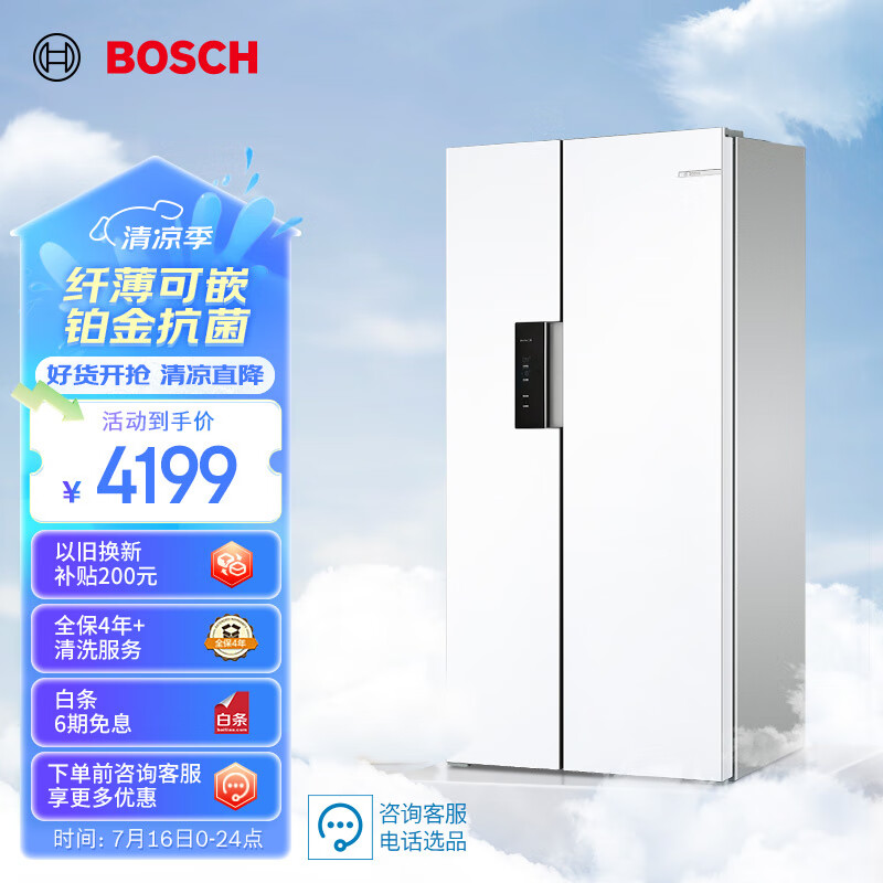 博世(BOSCH)【云朵白】502升超薄可嵌入式变频大容量风冷无霜对开双开门家用冰箱BCD-502W(K1EA50209C)价格:4199.00元!