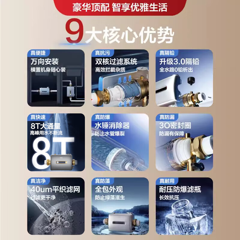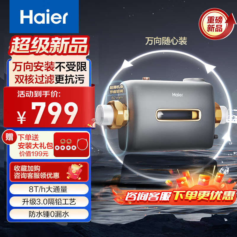 海尔(Haier)前置过滤器万向安装8T大通量过滤器净水器家用40微米双滤网过滤器 小横星 HQZ60-HFAW12价格:799.00元!
