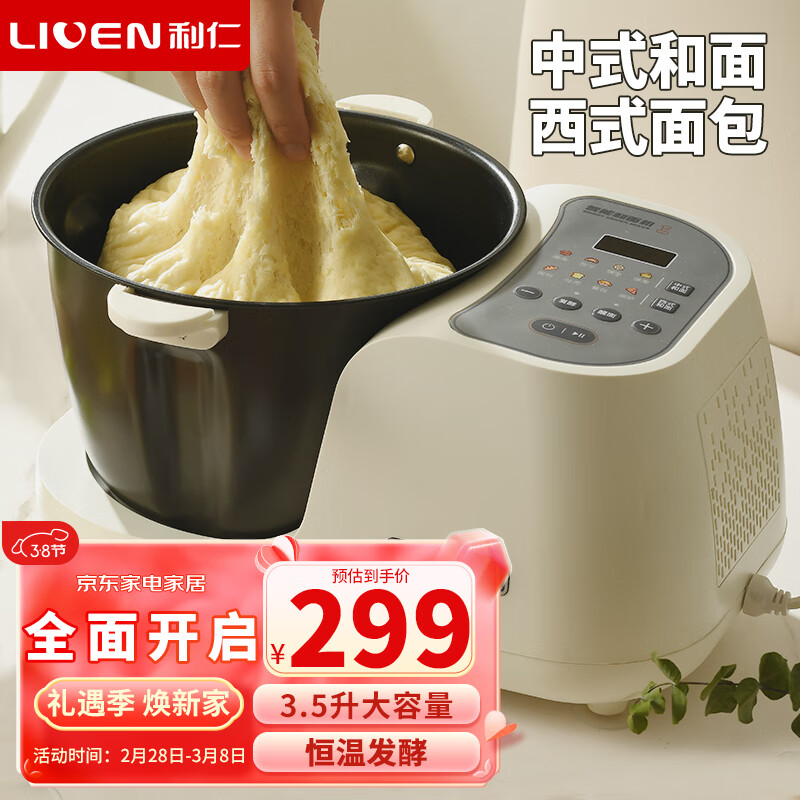 利仁(Liven)和面机家用揉面机厨师机全自动搅面机醒面机发面机多功能面包面粉搅拌机家用料理机3.5升 HMJ-D4S价格:299.00元!