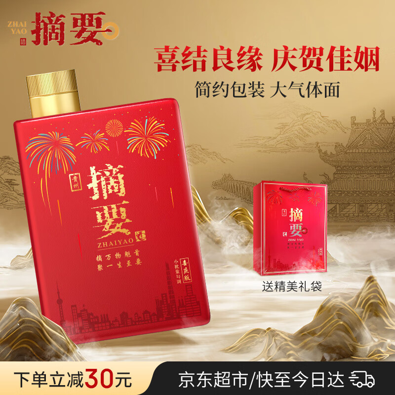 金沙回沙酒 摘要喜庆版 酱香型白酒 53度 520ml 礼盒装 纯粮食酱酒价格:975.00元!