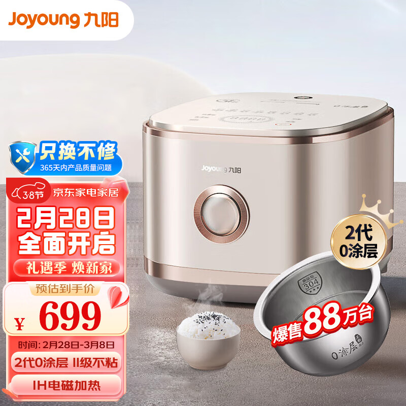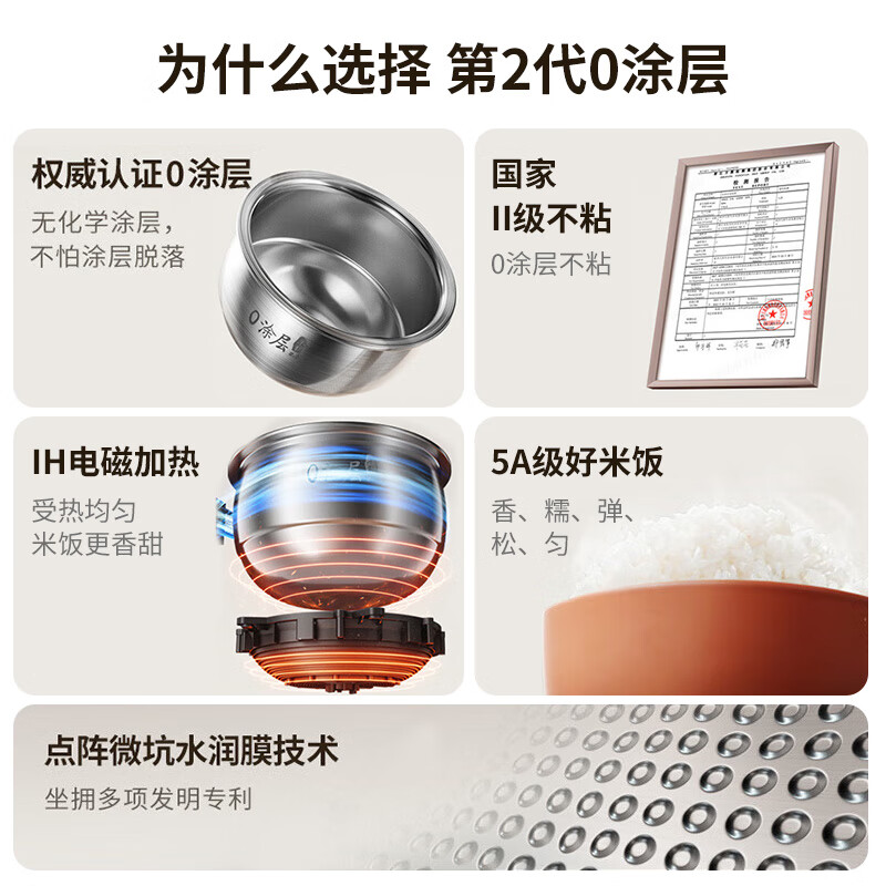 九阳(Joyoung)太空系列2代0涂层电饭锅304不锈钢内胆4L电饭煲40N1S【企业采购】【支持一件代发】价格:699.00元!