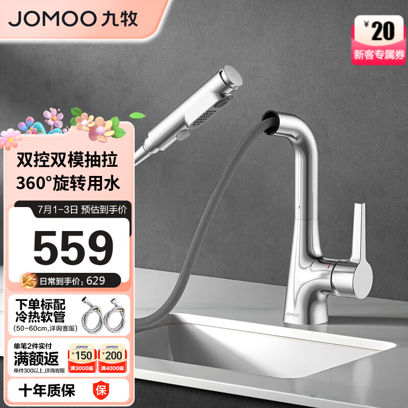 九牧(JOMOO)多功能抽拉式可旋转一键止水双控面盆龙头 32397-594/1B-Z价格:629.00元!