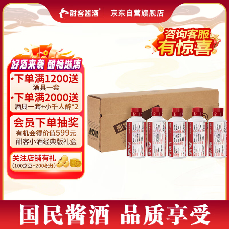 酣客 2022年标准版 线下同款 酱香型白酒53度大曲 100ml*5瓶 礼盒装价格:436.00元!
